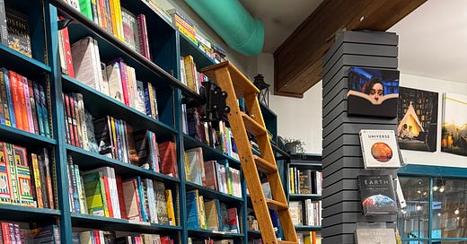 I always find joy in a well-curated and beautiful book store. This one with a rolling ladder felt like one from my dreams, and the shelves are my favorite color! Wandering through this one in Whistler was a moment of quiet happiness.
